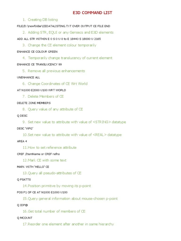 04.01.2021 · pdms & e3d commands. 04.01.2021 · pdms & e3d commands. 4 q u in /* to find the elevation of origin with respect to world. Change the ce element colour temporarily enhance ce colour green. Adding str, equi or any gensecs and e3d elements add all str within e 0 s 0 u 0 to e 18440 s 18000 u 2165. Boost your productivity, and enable your workforce to deliver better plant. For the "site" creation go to create click on site in the general tab (refer to fig... Don't provide space between words.